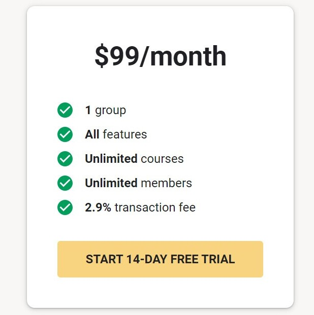 - Flat $99/month for all features (no member or content limits).